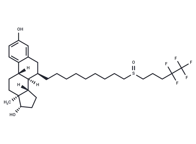 – Fulvestrant (ZM 182780) is an estrogen receptor (ER) antagonist (IC50=9.4 nM) and an agonist of GPR30. Fulvestrant has antitumor activity, inhibiting cell proliferation and inducing apoptosis and autophagy.