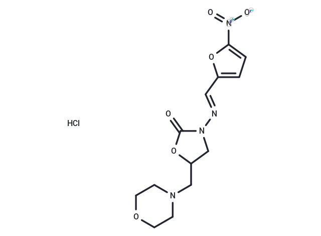 – Cl.[O-][N+](=O)c1ccc(C=NN2CC(CN3CCOCC3)OC2=O)o1