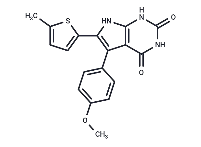 – COc1ccc(cc1)-c1c([nH]c2[nH]c(=O)[nH]c(=O)c12)-c1ccc(C)s1