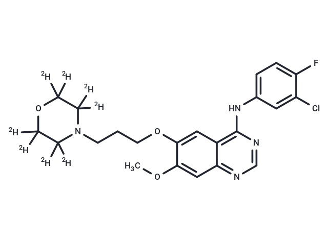 – Gefitinib is an EGFR tyrosine kinase inhibitor, with IC50 of 2-37 nM in NR6wtEGFR cells. Gefitinib D8 is a deuterium labeled Gefitinib.