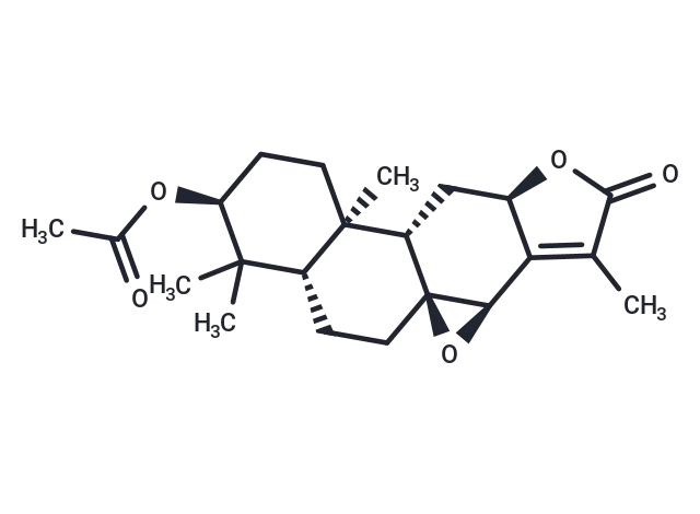 – CC(=O)O[C@H]1CC[C@@]2(C)[C@@H]3C[C@H]4OC(=O)C(C)=C4[C@H]4O[C@@]34CC[C@@H]2C1(C)C |r,c:16|