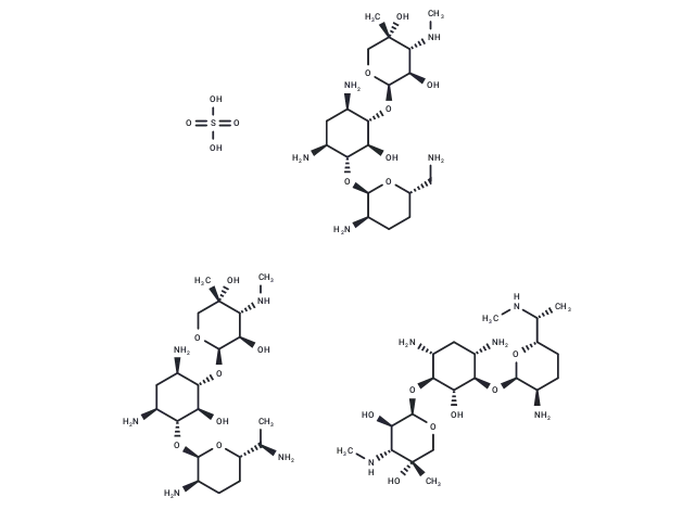 – OS(O)(=O)=O.CN[C@@H]1[C@@H](O)[C@@H](O[C@H]2[C@H](N)C[C@H](N)[C@@H](O[C@H]3O[C@H](CN)CC[C@H]3N)[C@@H]2O)OC[C@]1(C)O.CN[C@@H]1[C@@H](O)[C@@H](O[C@H]2[C@H](N)C[C@H](N)[C@@H](O[C@H]3O[C@@H](CC[C@H]3N)[C@@H](C)N)[C@@H]2O)OC[C@]1(C)O.CN[C@H](C)[C@@H]1CC[C@@H](N)[C@@H](O[C@@H]2[C@@H](N)C[C@@H](N)[C@H](O[C@H]3OC[C@](C)(O)[C@H](NC)[C@H]3O)[C@H]2O)O1