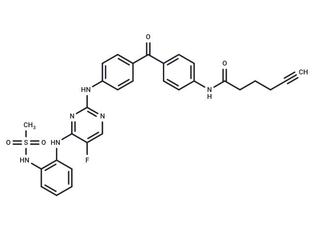 – N(C1=C(NS(C)(=O)=O)C=CC=C1)C2=NC(NC3=CC=C(C(=O)C4=CC=C(NC(CCCC#C)=O)C=C4)C=C3)=NC=C2F