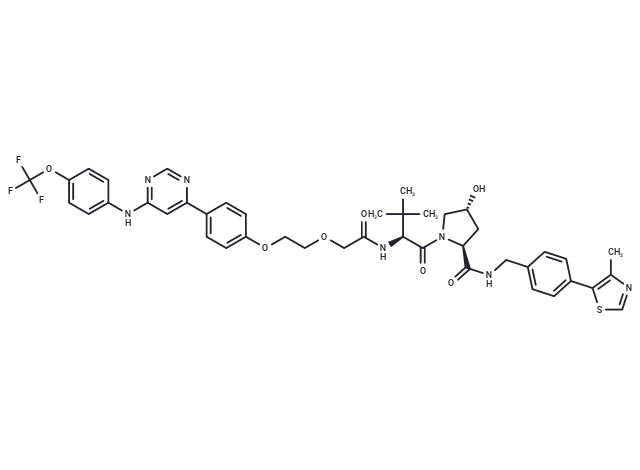 – Cc1ncsc1-c1ccc(CNC(=O)[C@@H]2C[C@@H](O)CN2C(=O)[C@@H](NC(=O)COCCOc2ccc(cc2)-c2cc(Nc3ccc(OC(F)(F)F)cc3)ncn2)C(C)(C)C)cc1