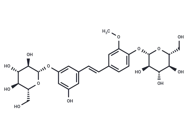 – O(C1=C(OC)C=C(/C=C/C2=CC(O[C@@H]3O[C@H](CO)[C@@H](O)[C@H](O)[C@H]3O)=CC(O)=C2)C=C1)[C@@H]4O[C@H](CO)[C@@H](O)[C@H](O)[C@H]4O