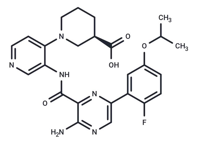 – CC(C)Oc1ccc(F)c(c1)-c1cnc(N)c(n1)C(=O)Nc1cnccc1N1CCC[C@H](C1)C(O)=O