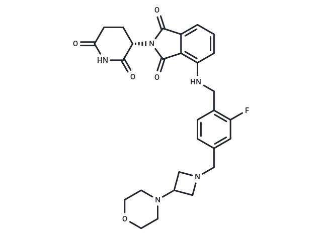 – N(CC1=C(F)C=C(CN2CC(C2)N3CCOCC3)C=C1)C4=C5C(C(=O)N(C5=O)[C@@H]6C(=O)NC(=O)CC6)=CC=C4
