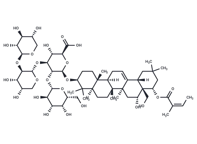 – C(O)[C@]12[C@](C=3[C@@](C)(C[C@H]1O)[C@@]4(C)[C@](CC3)([C@]5(C)[C@@](CC4)(C(C)(C)[C@@H](O[C@H]6[C@H](O[C@@H]7O[C@H](CO)[C@H](O)[C@H](O)[C@H]7O)[C@@H](O[C@H]8[C@H](O[C@H]9[C@H](O)[C@@H](O)[C@H](O)CO9)[C@@H](O)[C@@H](O)CO8)[C@H](O)[C@@H](C(O)=O)O6)CC5)[H])[H])(CC(C)(C)C[C@@H]2OC(/C(=CC)/C)=O)[H]