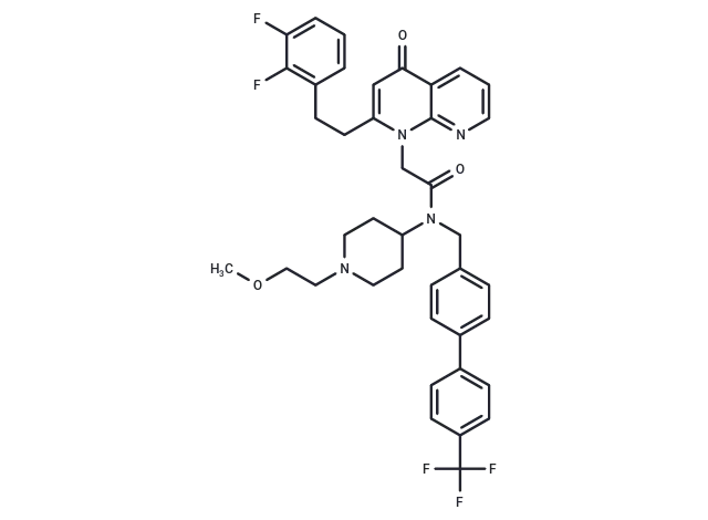 – C(C(N(CC1=CC=C(C=C1)C2=CC=C(C(F)(F)F)C=C2)C3CCN(CCOC)CC3)=O)N4C=5C(C(=O)C=C4CCC6=C(F)C(F)=CC=C6)=CC=CN5