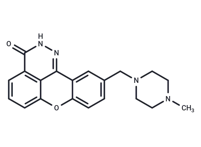 – GPI-15427 is a potent PARP-1 inhibitor capable of crossing the blood-brain barrier, which can significantly increased the antitumor activity of the methylating agent TMZ against malignant melanoma, glioblastoma multiforme, or lymphoma growing at the CNS site. GPI-15427 acts as a potent inhibitor of the enzyme, being capable of inhibiting the activity of purified PARP-1 at nanomolar concentrations. GPI-15427 induced significant sensitization to radiotherapy, representing a promising new treatment in the management of HNSCC.