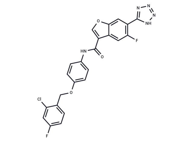 – O=C(NC1=CC=C(OCC2=CC=C(F)C=C2Cl)C=C1)C3=COC4=CC(=C(F)C=C43)C5=NN=NN5