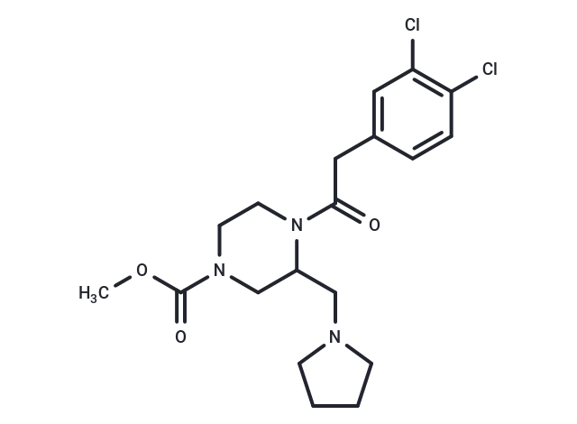 – C(CC1=CC(Cl)=C(Cl)C=C1)(=O)N2C(CN3CCCC3)CN(C(OC)=O)CC2