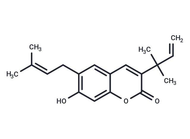 – CC(C)=CCc1cc2cc(c(=O)oc2cc1O)C(C)(C)C=C