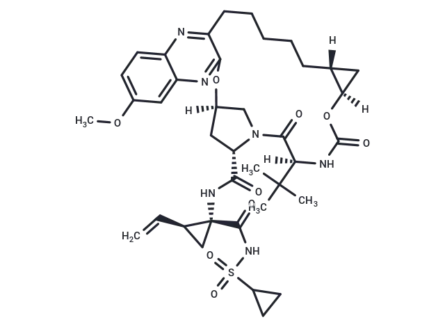 – [H][C@@]12C[C@@]1([H])OC(=O)N[C@]([H])(C(=O)N1C[C@@]([H])(C[C@H]1C(=O)N[C@@]1(C[C@H]1C=C)C(=O)NS(=O)(=O)C1CC1)Oc1nc3cc(OC)ccc3nc1CCCCC2)C(C)(C)C