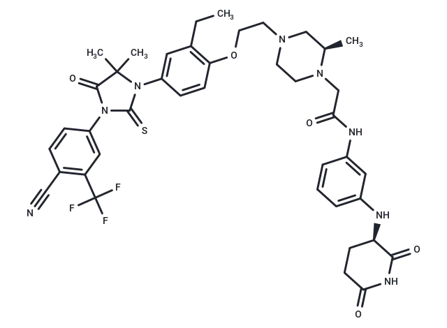 – S=C1N(C(=O)C(C)(C)N1C2=CC(CC)=C(OCCN3C[C@@H](C)N(CC(NC4=CC(N[C@H]5C(=O)NC(=O)CC5)=CC=C4)=O)CC3)C=C2)C6=CC(C(F)(F)F)=C(C#N)C=C6