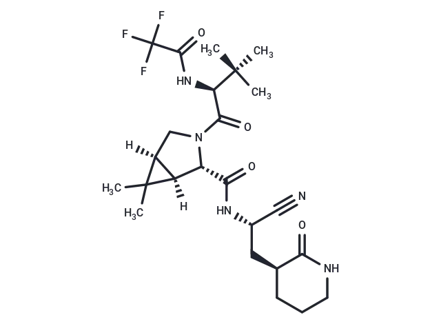 – C(N[C@@H](C[C@H]1C(=O)NCCC1)C#N)(=O)[C@@H]2[C@@]3([C@@](C3(C)C)(CN2C([C@@H](NC(C(F)(F)F)=O)[C@@](C)(C)C)=O)[H])[H]