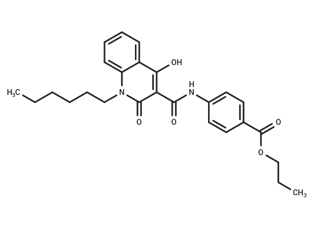 – CCCCCCn1c2ccccc2c(O)c(C(=O)Nc2ccc(cc2)C(=O)OCCC)c1=O