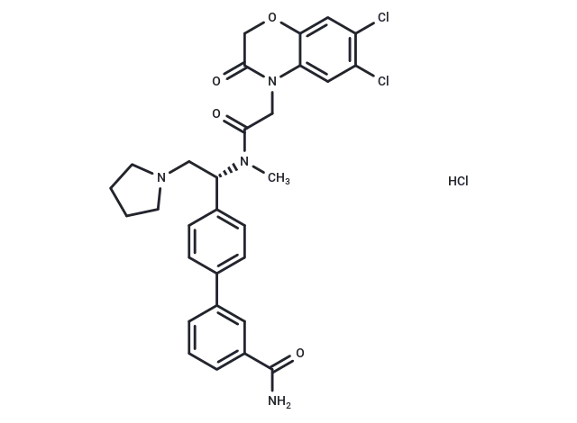 – C(C(N([C@@H](CN1CCCC1)C2=CC=C(C=C2)C3=CC(C(N)=O)=CC=C3)C)=O)N4C=5C(OCC4=O)=CC(Cl)=C(Cl)C5.Cl