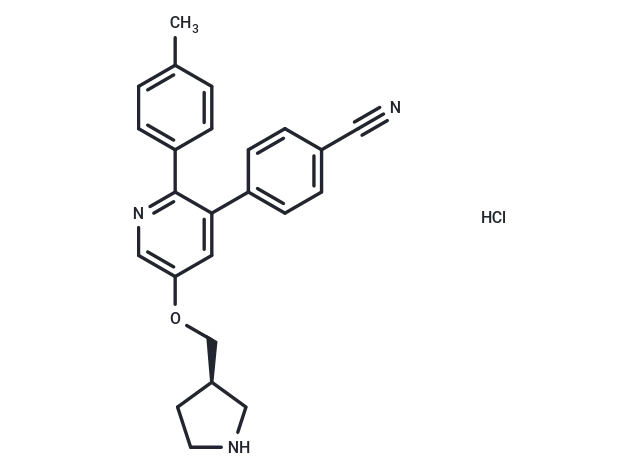 – N#CC1=CC=C(C2=CC(OC[C@H]3CNCC3)=CN=C2C4=CC=C(C)C=C4)C=C1.Cl