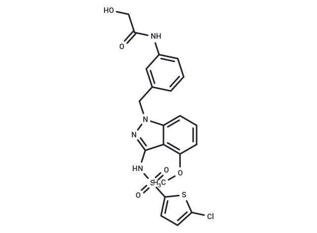– N(S(=O)(=O)C=1SC(Cl)=CC1)C=2C=3C(N(CC4=CC(NC(CO)=O)=CC=C4)N2)=CC=CC3OC