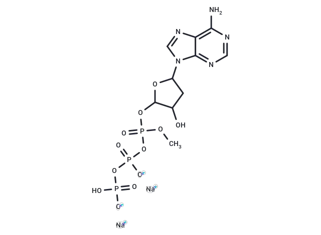– [Na+].[Na+].COP(=O)(OC1OC(CC1O)n1cnc2c(N)ncnc12)OP([O-])(=O)OP(O)([O-])=O