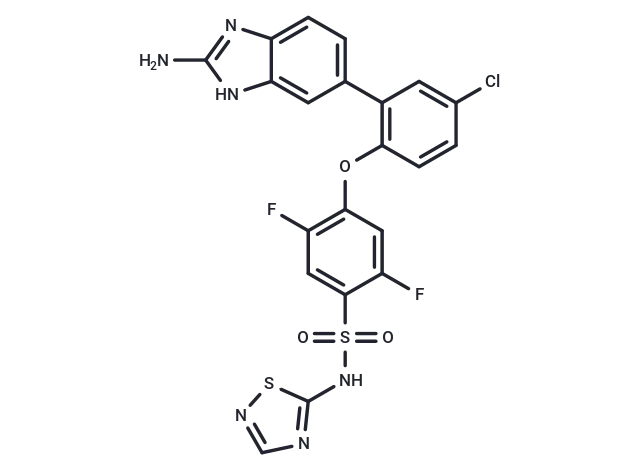 – O(C1=C(C=C(Cl)C=C1)C=2C=C3C(=CC2)N=C(N)N3)C4=C(F)C=C(S(NC5=NC=NS5)(=O)=O)C(F)=C4
