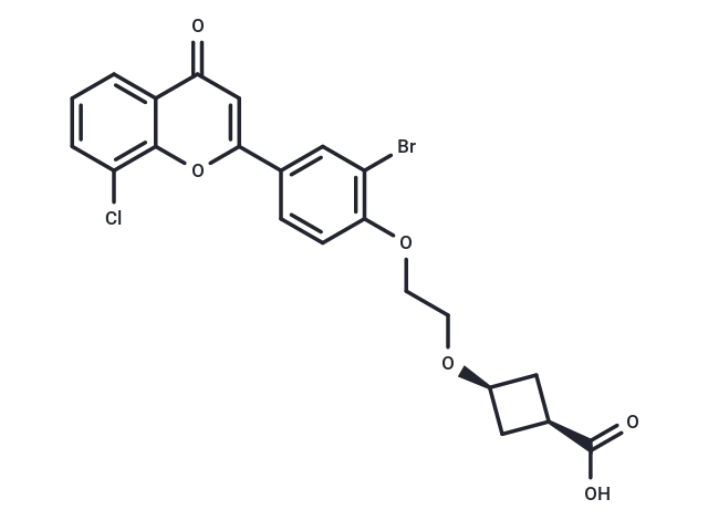 – ClC1=C2C(C(=O)C=C(O2)C3=CC(Br)=C(OCCO[C@H]4C[C@@H](C(O)=O)C4)C=C3)=CC=C1