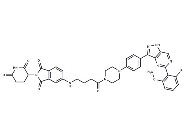 – FC1=CC=CC(OC)=C1C2=NC3=C(NN=C3C4=CC=C(N5CCN(C(CCCNC6=CC(C(N(C7CCC(NC7=O)=O)C8=O)=O)=C8C=C6)=O)CC5)C=C4)C=N2