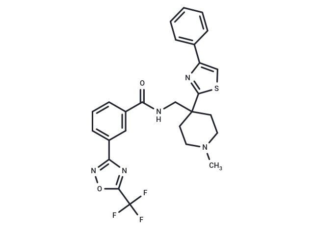 – C(NC(=O)C1=CC(=CC=C1)C=2N=C(C(F)(F)F)ON2)C3(CCN(C)CC3)C4=NC(=CS4)C5=CC=CC=C5
