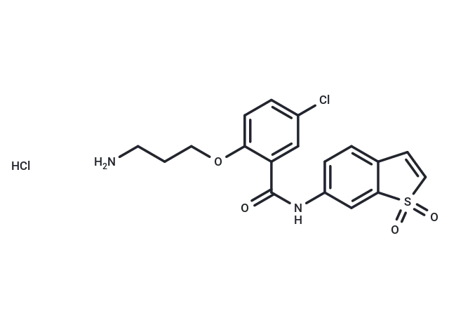 – Cl.NCCCOc1ccc(Cl)cc1C(=O)Nc1ccc2C=CS(=O)(=O)c2c1 |c:20|