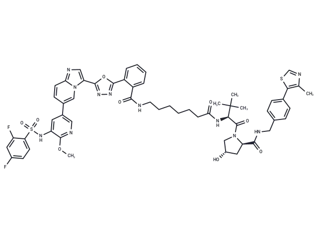– COc1ncc(cc1NS(=O)(=O)c1ccc(F)cc1F)-c1ccc2ncc(-c3nnc(o3)-c3ccccc3C(=O)NCCCCCCC(=O)N[C@H](C(=O)N3C[C@@H](O)C[C@@H]3C(=O)NCc3ccc(cc3)-c3scnc3C)C(C)(C)C)n2c1