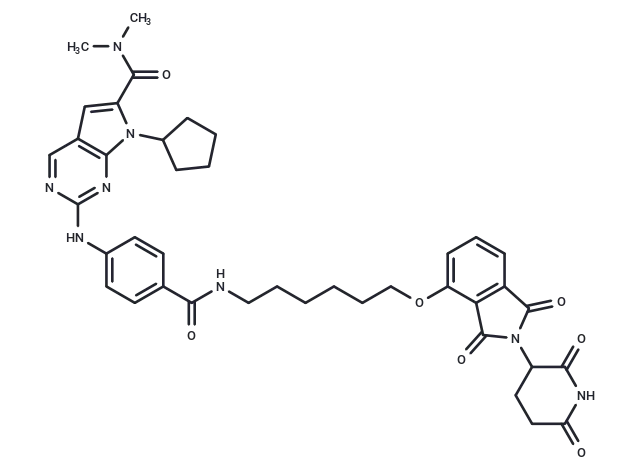 – O=C(NCCCCCCOC1=CC=CC=2C(=O)N(C(=O)C12)C3C(=O)NC(=O)CC3)C4=CC=C(C=C4)NC=5N=CC=6C=C(C(=O)N(C)C)N(C6N5)C7CCCC7