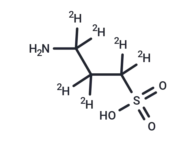 – Homotaurine-d6 is a deuterated compound of Homotaurine. Homotaurine has a CAS number of 3687-18-1. Because of its similarity in structure to the neurotransmitter gamma-aminobutyric acid (GABA), it has GABAergic effects and may be useful as an anticonvulsant. Homotaurine has also been investigated as a potential treatment for Alzheimer’s disease. It binds to soluble amyloid beta and inhibits the formation of neurotoxic aggregates that lead to amyloid plaque deposition in the brain. However, clinical trials failed to show improvement compared to placebo.