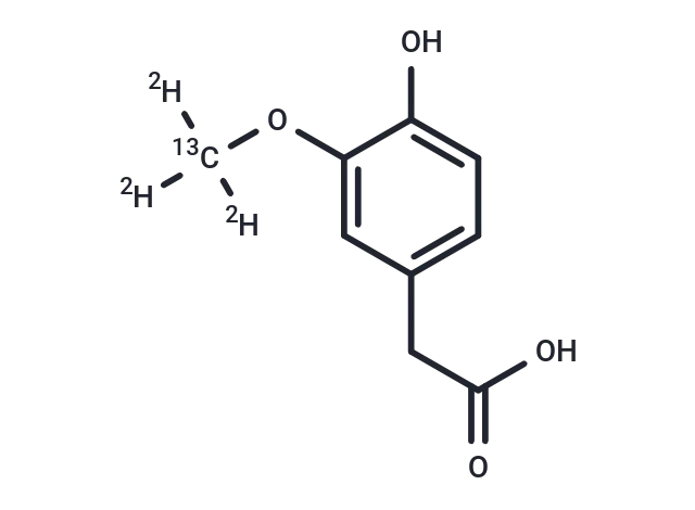 – Homovanillic Acid-13C-d3 the 13C and deuterated compound of Homovanillic Acid. Homovanillic Acid has a CAS number of 306-08-1. Homovanillic acid is a dopamine metabolite found to be associated with aromatic L-amino acid decarboxylase deficiency, celiac disease, growth hormone deficiency, and sepiapterin reductase deficiency.