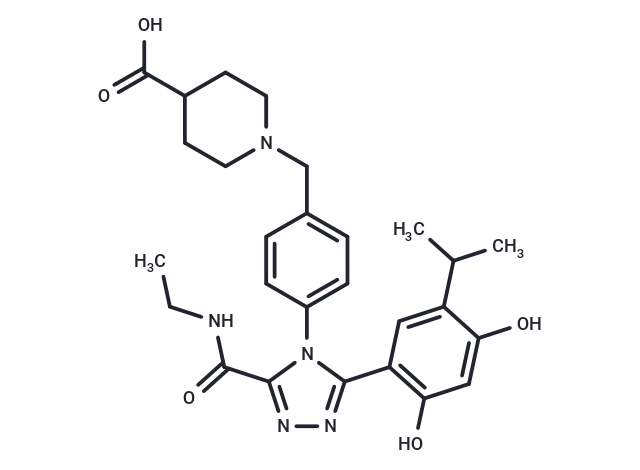 – O=C(O)C1CCN(CC2=CC=C(C=C2)N3C(=NN=C3C=4C=C(C(O)=CC4O)C(C)C)C(=O)NCC)CC1