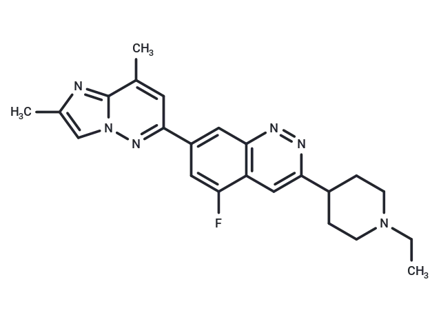 – FC1=CC(=CC=2N=NC(=CC12)C3CCN(CC)CC3)C4=NN5C=C(N=C5C(=C4)C)C