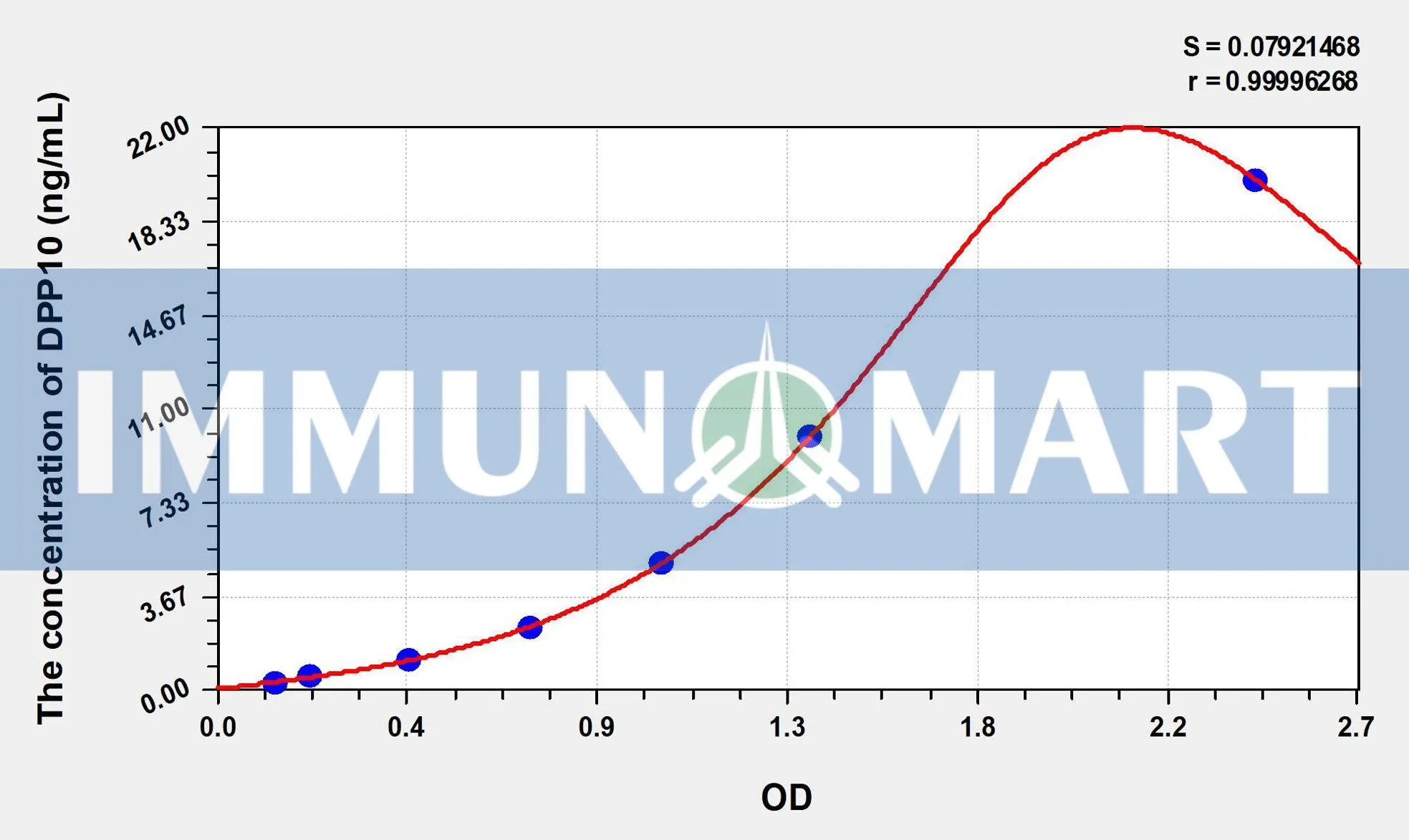 – The test principle applied in this kit is Sandwich enzyme immunoassay. The microtiter plate provided in this kit has been pre-coated with an antibody specific to Human DPP10. Standards or samples are added to the appropriate microtiter plate wells then with a biotin-conjugated antibody specific to Human DPP10. Next, Avidin conjugated to Horseradish Peroxidase (HRP) is added to each microplate well and incubated. After TMB substrate solution is added, only those wells that contain Human DPP10, biotin-conjugated antibody and enzyme-conjugated Avidin will exhibit a change in color. The enzyme-substrate reaction is terminated by the addition of sulphuric acid solution and the color change is measured spectrophotometrically at a wavelength of 450nm ± 10nm. The concentration of Human DPP10 in the samples is then determined by comparing the OD of the samples to the standard curve.