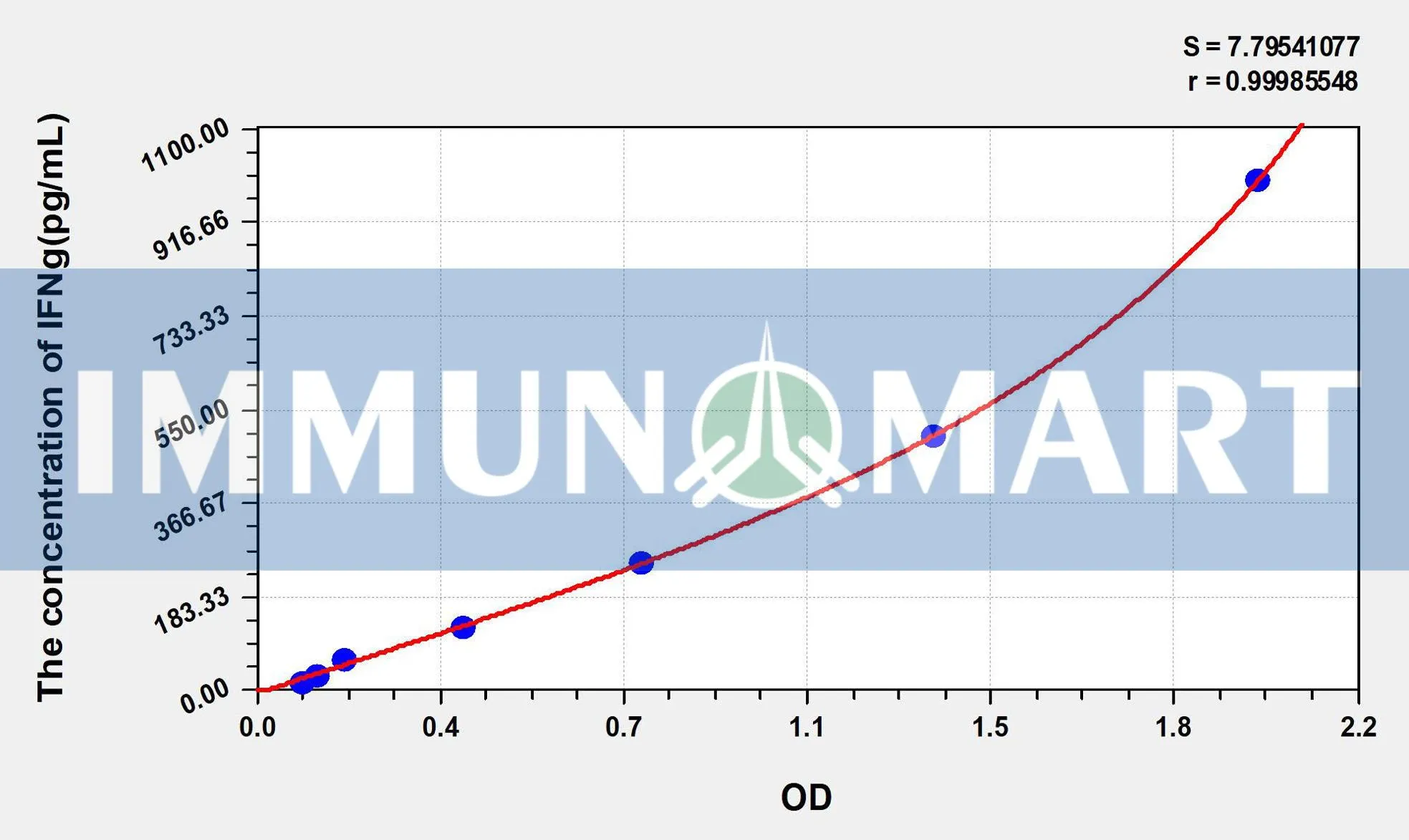 – The test principle applied in this kit is Sandwich enzyme immunoassay. The microtiter plate provided in this kit has been pre-coated with an antibody specific to Human IFNg. Standards or samples are added to the appropriate microtiter plate wells then with a biotin-conjugated antibody specific to Human IFNg. Next, Avidin conjugated to Horseradish Peroxidase (HRP) is added to each microplate well and incubated. After TMB substrate solution is added, only those wells that contain Human IFNg, biotin-conjugated antibody and enzyme-conjugated Avidin will exhibit a change in color. The enzyme-substrate reaction is terminated by the addition of sulphuric acid solution and the color change is measured spectrophotometrically at a wavelength of 450nm ± 10nm. The concentration of Human IFNg in the samples is then determined by comparing the OD of the samples to the standard curve.