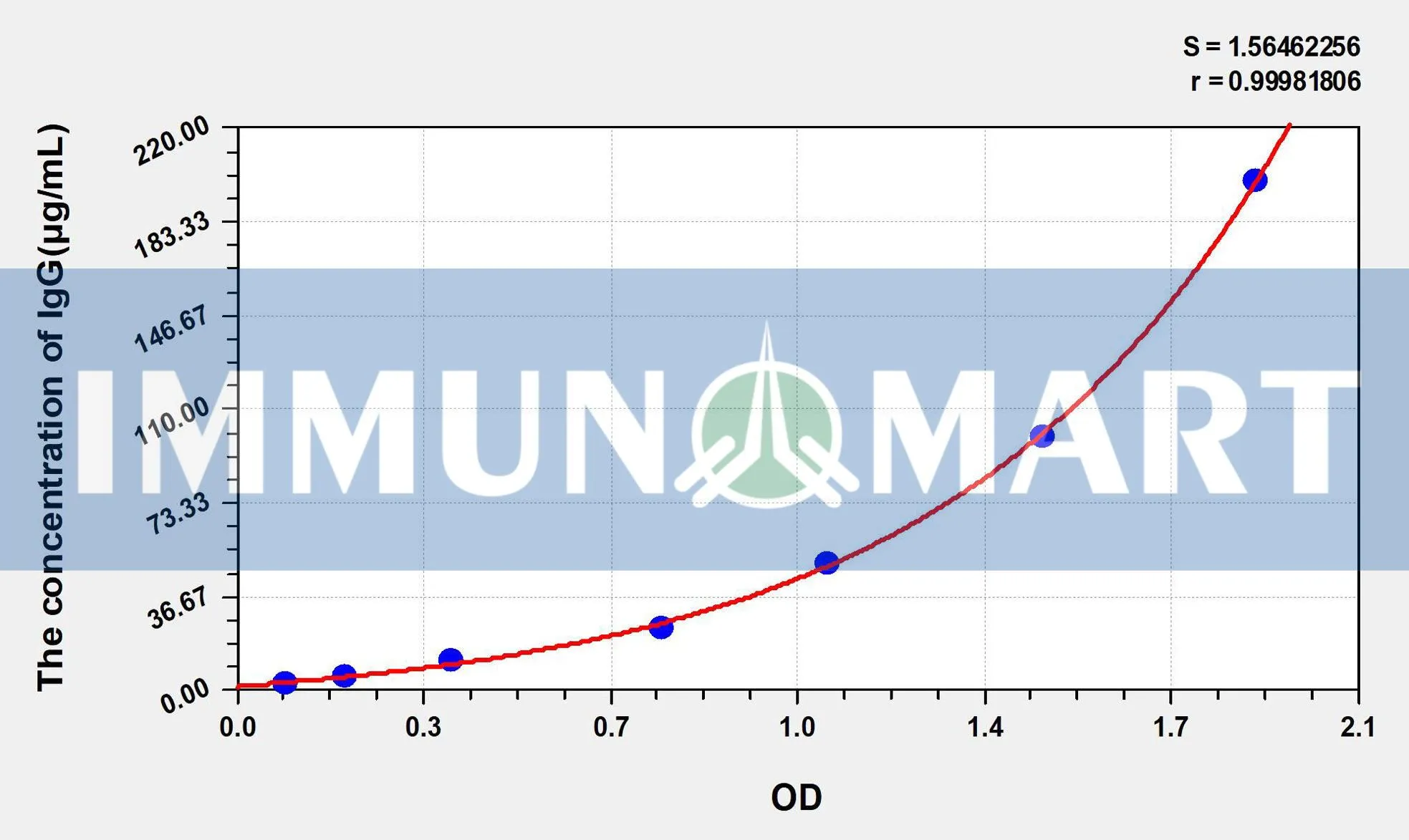 – The test principle applied in this kit is Sandwich enzyme immunoassay. The microtiter plate provided in this kit has been pre-coated with an antibody specific to Human IgG. Standards or samples are added to the appropriate microtiter plate wells then with a biotin-conjugated antibody specific to Human IgG. Next, Avidin conjugated to Horseradish Peroxidase (HRP) is added to each microplate well and incubated. After TMB substrate solution is added, only those wells that contain Human IgG, biotin-conjugated antibody and enzyme-conjugated Avidin will exhibit a change in color. The enzyme-substrate reaction is terminated by the addition of sulphuric acid solution and the color change is measured spectrophotometrically at a wavelength of 450nm ± 10nm. The concentration of Human IgG in the samples is then determined by comparing the OD of the samples to the standard curve.