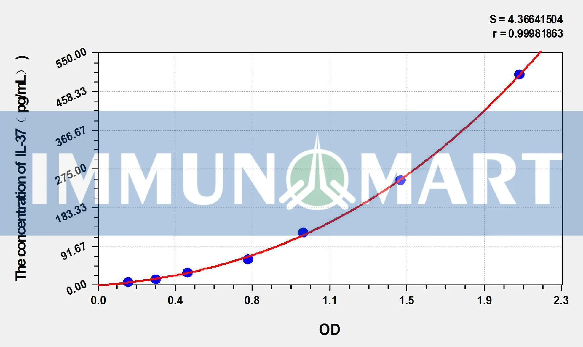 – The test principle applied in this kit is Sandwich enzyme immunoassay. The microtiter plate provided in this kit has been pre-coated with an antibody specific to Human IL-37. Standards or samples are added to the appropriate microtiter plate wells then with a biotin-conjugated antibody specific to Human IL-37. Next, Avidin conjugated to Horseradish Peroxidase (HRP) is added to each microplate well and incubated. After TMB substrate solution is added, only those wells that contain Human IL-37, biotin-conjugated antibody and enzyme-conjugated Avidin will exhibit a change in color. The enzyme-substrate reaction is terminated by the addition of sulphuric acid solution and the color change is measured spectrophotometrically at a wavelength of 450nm ± 10nm. The concentration of Human IL-37 in the samples is then determined by comparing the OD of the samples to the standard curve.