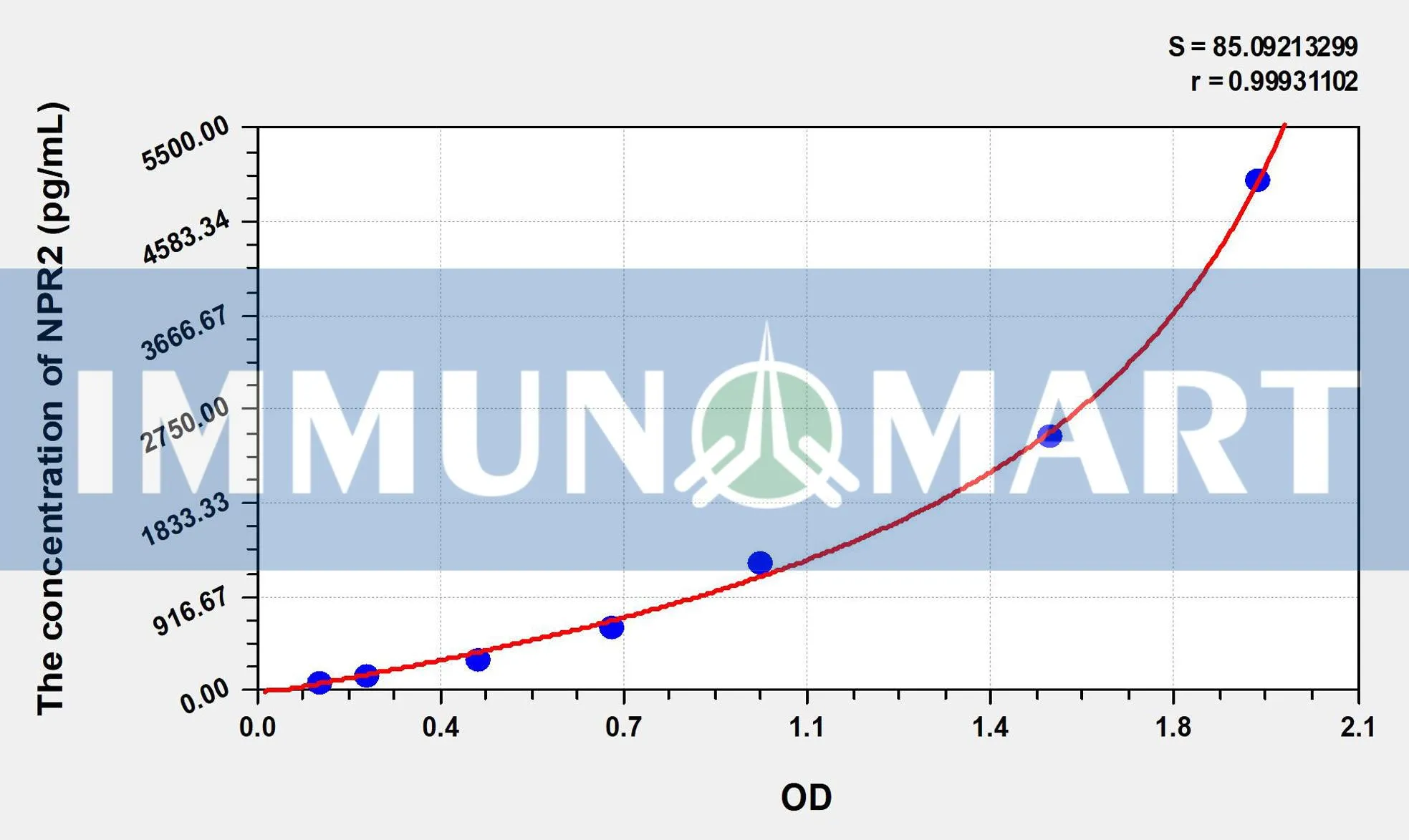 – The test principle applied in this kit is Sandwich enzyme immunoassay. The microtiter plate provided in this kit has been pre-coated with an antibody specific to Human NPR2. Standards or samples are added to the appropriate microtiter plate wells then with a biotin-conjugated antibody specific to Human NPR2. Next, Avidin conjugated to Horseradish Peroxidase (HRP) is added to each microplate well and incubated. After TMB substrate solution is added, only those wells that contain Human NPR2, biotin-conjugated antibody and enzyme-conjugated Avidin will exhibit a change in color. The enzyme-substrate reaction is terminated by the addition of sulphuric acid solution and the color change is measured spectrophotometrically at a wavelength of 450nm ± 10nm. The concentration of Human NPR2 in the samples is then determined by comparing the OD of the samples to the standard curve.