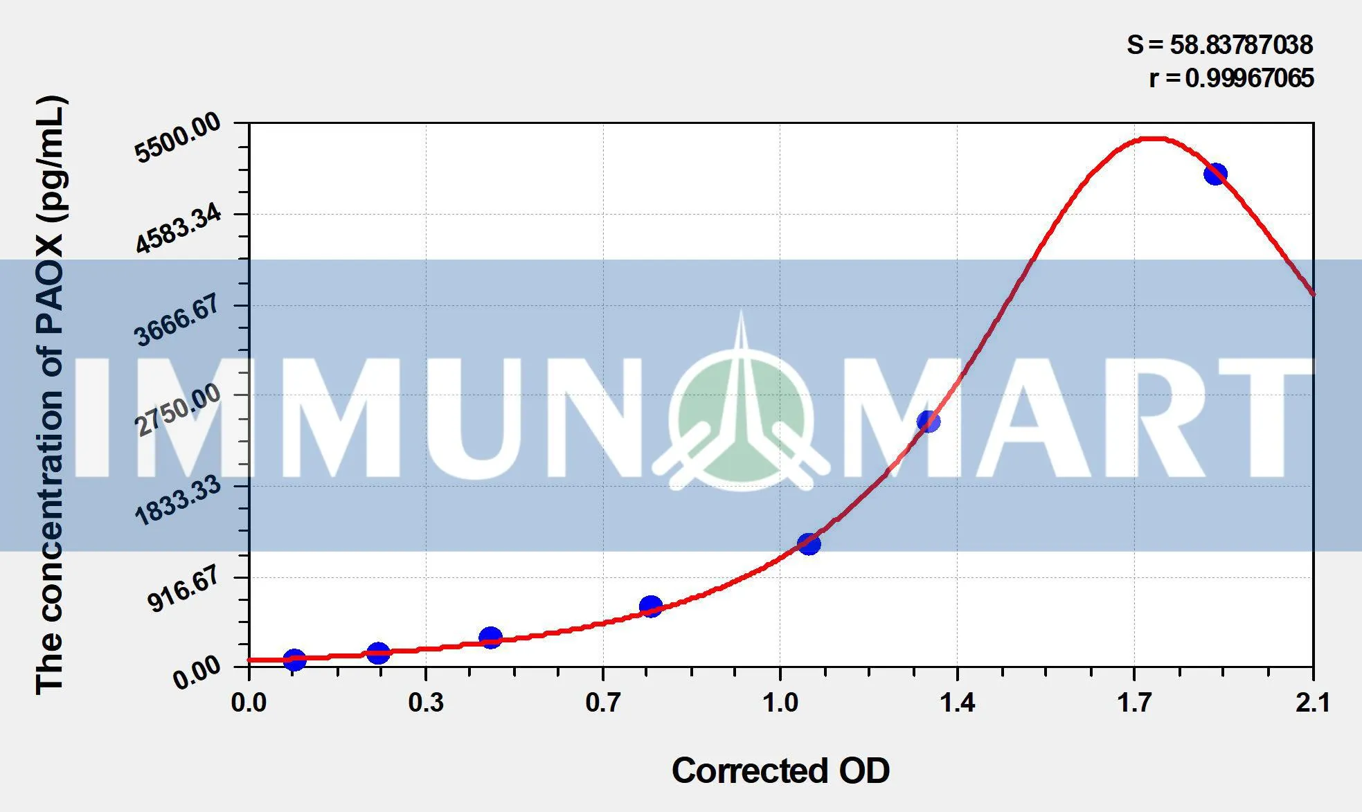 – The test principle applied in this kit is Sandwich enzyme immunoassay. The microtiter plate provided in this kit has been pre-coated with an antibody specific to Human PAOX. Standards or samples are added to the appropriate microtiter plate wells then with a biotin-conjugated antibody specific to Human PAOX. Next, Avidin conjugated to Horseradish Peroxidase (HRP) is added to each microplate well and incubated. After TMB substrate solution is added, only those wells that contain Human PAOX, biotin-conjugated antibody and enzyme-conjugated Avidin will exhibit a change in color. The enzyme-substrate reaction is terminated by the addition of sulphuric acid solution and the color change is measured spectrophotometrically at a wavelength of 450nm ± 10nm. The concentration of Human PAOX in the samples is then determined by comparing the OD of the samples to the standard curve.