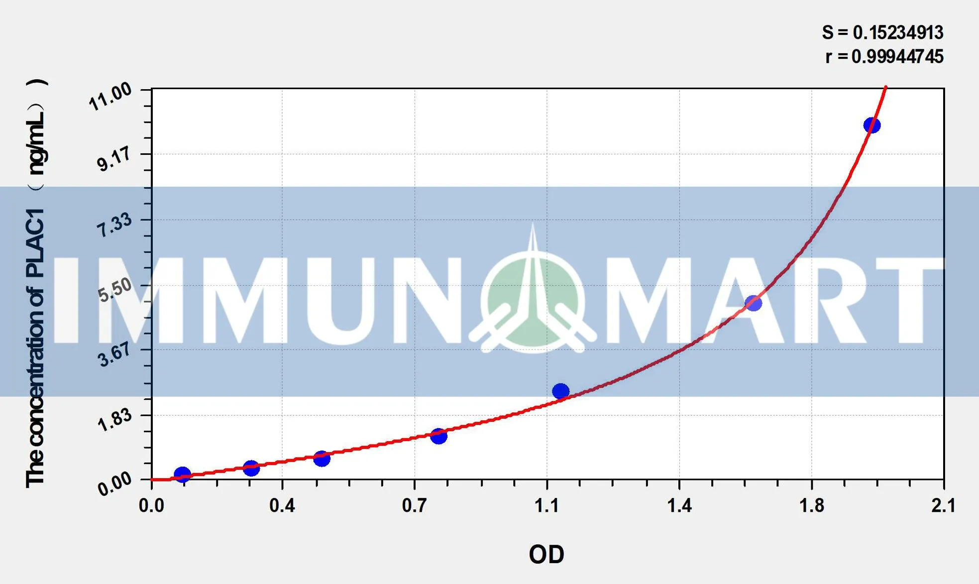 – The test principle applied in this kit is Sandwich enzyme immunoassay. The microtiter plate provided in this kit has been pre-coated with an antibody specific to Human PLAC1. Standards or samples are added to the appropriate microtiter plate wells then with a biotin-conjugated antibody specific to Human PLAC1. Next, Avidin conjugated to Horseradish Peroxidase (HRP) is added to each microplate well and incubated. After TMB substrate solution is added, only those wells that contain Human PLAC1, biotin-conjugated antibody and enzyme-conjugated Avidin will exhibit a change in color. The enzyme-substrate reaction is terminated by the addition of sulphuric acid solution and the color change is measured spectrophotometrically at a wavelength of 450nm ± 10nm. The concentration of Human PLAC1 in the samples is then determined by comparing the OD of the samples to the standard curve.