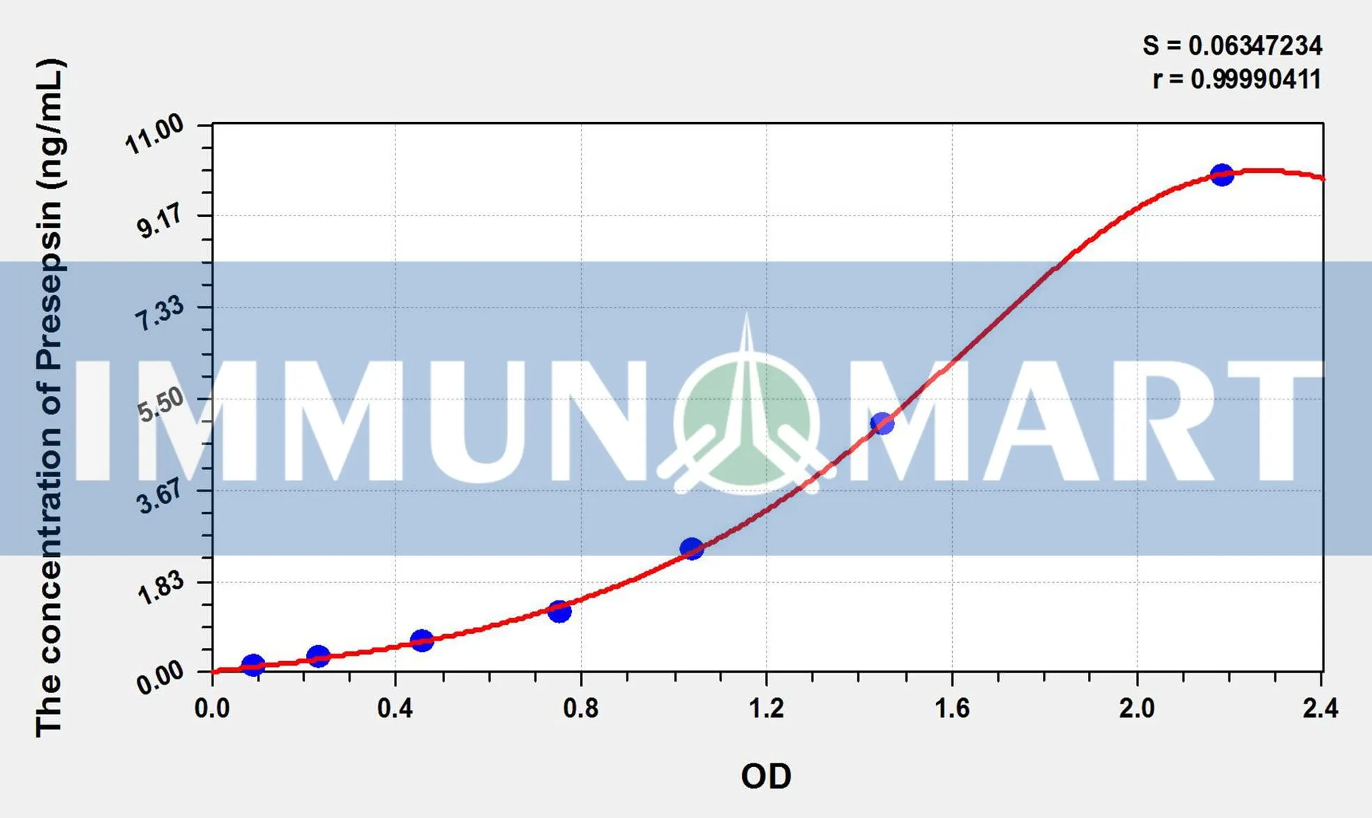 – The test principle applied in this kit is Sandwich enzyme immunoassay. The microtiter plate provided in this kit has been pre-coated with an antibody specific to Human Presepsin. Standards or samples are added to the appropriate microtiter plate wells then with a biotin-conjugated antibody specific to Human Presepsin. Next, Avidin conjugated to Horseradish Peroxidase (HRP) is added to each microplate well and incubated. After TMB substrate solution is added, only those wells that contain Human Presepsin, biotin-conjugated antibody and enzyme-conjugated Avidin will exhibit a change in color. The enzyme-substrate reaction is terminated by the addition of sulphuric acid solution and the color change is measured spectrophotometrically at a wavelength of 450nm ± 10nm. The concentration of Human Presepsin in the samples is then determined by comparing the OD of the samples to the standard curve.