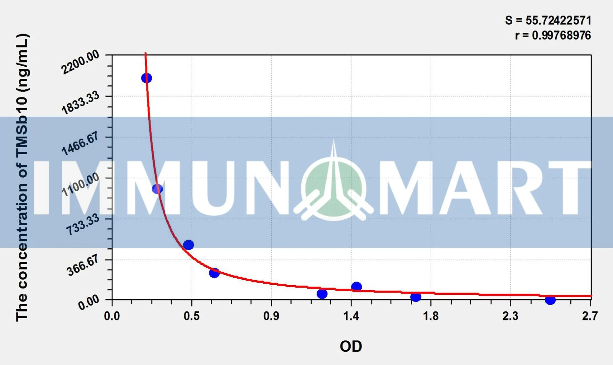 – This assay employs the competitive inhibition enzyme immunoassay technique. The microtiter plate provided in this kit has been pre-coated with Human TMSb10 protein. Standards or samples are added to the appropriate microtiter plate wells then with a biotin-conjugated antibody specific to Human TMSb10. Next, Avidin conjugated to Horseradish Peroxidase (HRP) is added to each microplate well and incubated. After TMB substrate solution is added. The enzyme-substrate reaction is terminated by the addition of sulphuric acid solution and the color change is measured spectrophotometrically at a wavelength of 450nm ± 10nm. The concentration of Human TMSb10 in the samples is then determined by comparing the OD of the samples to the standard curve.