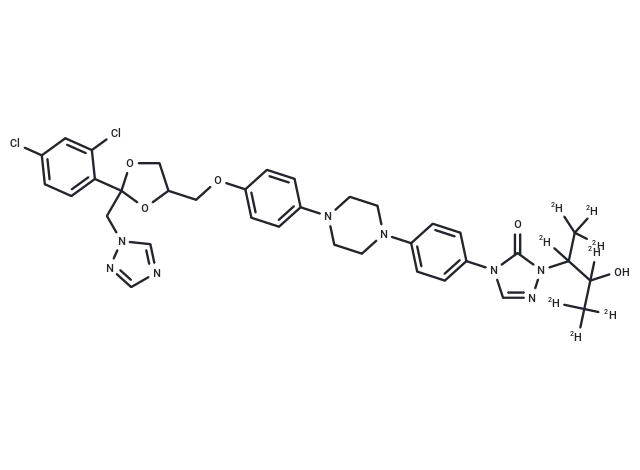 – O=C1N(C(C([2H])([2H])[2H])([2H])C(O)([2H])C([2H])([2H])[2H])N=CN1C2=CC=C(N3CCN(C4=CC=C(OCC5OC(CN6N=CN=C6)(C7=CC=C(Cl)C=C7Cl)OC5)C=C4)CC3)C=C2