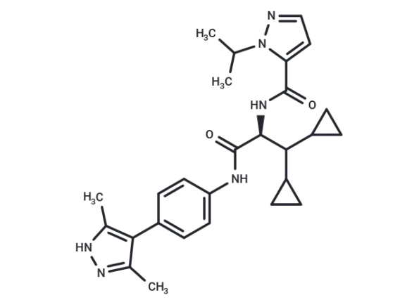 – CC(C)n1nccc1C(=O)N[C@@H](C(C1CC1)C1CC1)C(=O)Nc1ccc(cc1)-c1c(C)n[nH]c1C