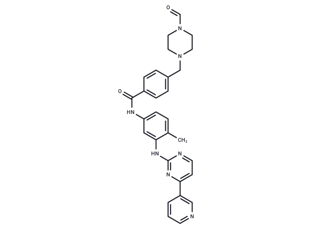 – O=CN1CCN(CC2=CC=C(C=C2)C(=O)NC3=CC=C(C(=C3)NC=4N=CC=C(N4)C5=CN=CC=C5)C)CC1