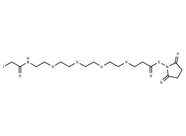 – Iodoacetyl-PEG4-NHS ester is a PEG-based linker for PROTACs that connects two essential ligands, facilitating the formation of PROTAC molecules. This linker enables selective protein degradation by leveraging the ubiquitin-proteasome system within cells.