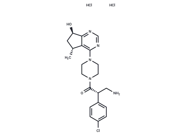 – Cl.Cl.C[C@@H]1C[C@@H](O)c2ncnc(N3CCN(CC3)C(=O)[C@H](CN)c3ccc(Cl)cc3)c12